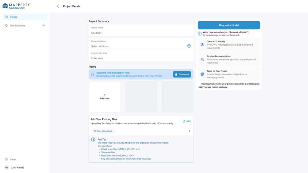 - Download the Mapperty Spaceview App from the App Store.