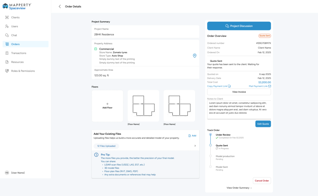 Projects are the core of Spaceview. Both clients and admins have tools to manage them effectively.